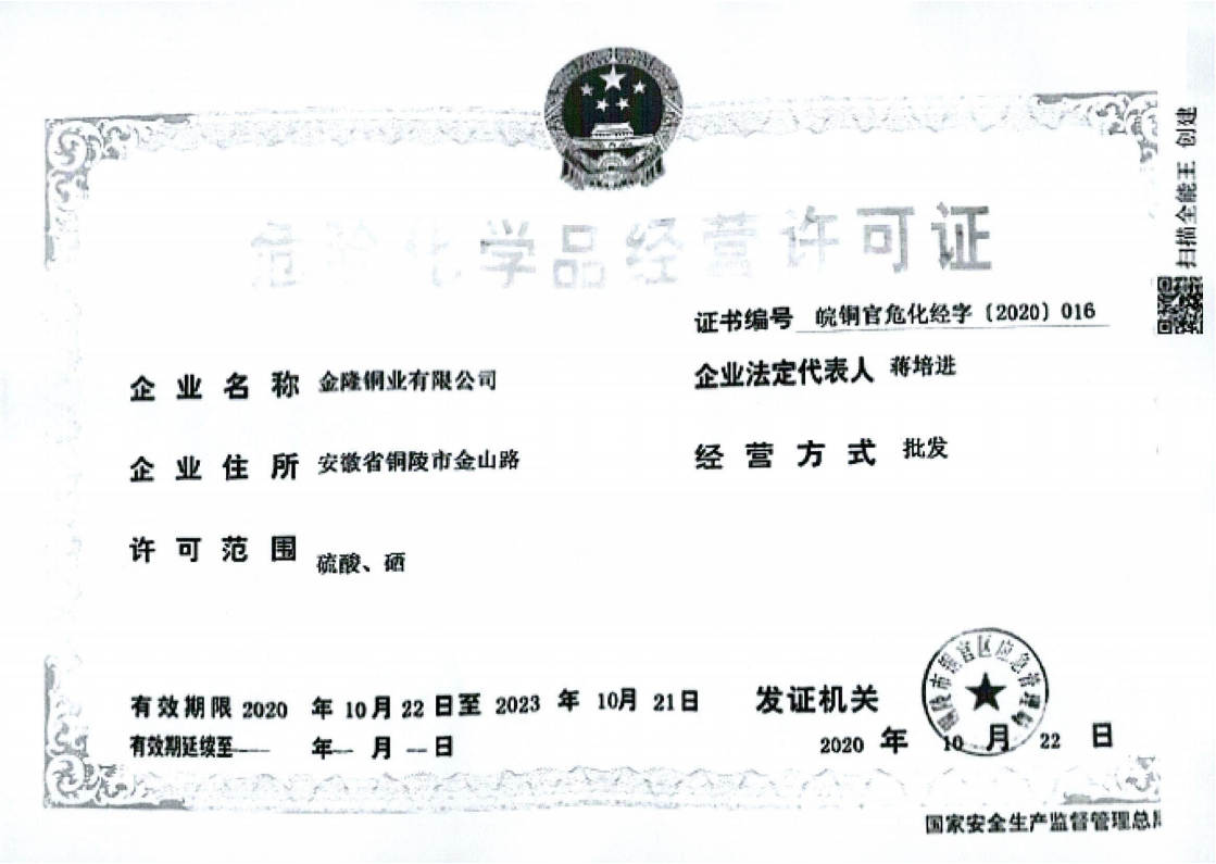 危險化學品生產銷售企業相關資質