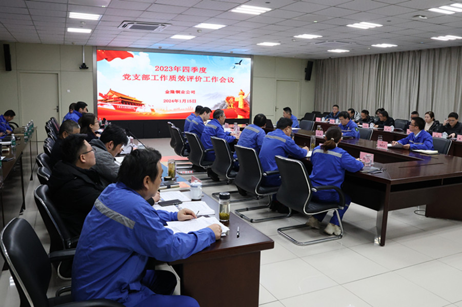 ?? ? ?1月15日下午,公司在中心會議室召開2023年四季度黨支部黨建工作質效評價工作會。會議由黨委書記、總經理高大銀主持。公司領導班子成員,各部門負責人,黨群各對口單位負責人,工場各黨支部書記和機關各黨支部書記、副書記,黨員職工代表等參加會議。集團公司機關黨委、銅冠銅箔公司、張家港聯合銅業公司、銅冠房地產公司、動力廠、技術中心等十余家單位來到現場觀摩會議。